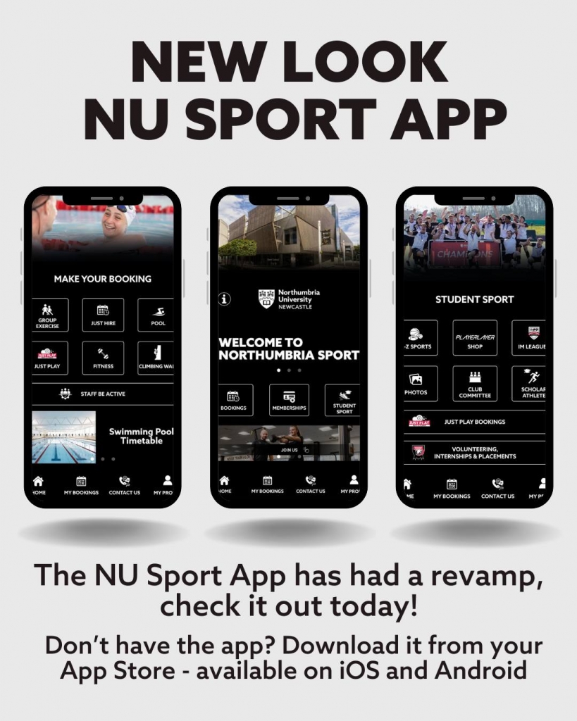 The NU Sport App is our central hub for all things Northumbria Sport. It gives you access to: